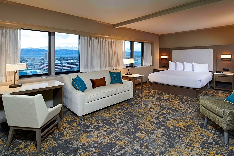 Located on the club floor, this room includes executive lounge access privileges and nightly turn down service. A 49" cable TV with pay options and video games is featured in this room. Tea and coffee-making facilities are also included.